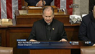 Even this office hasn't escaped partisan squabbling. Recent former Chaplain Patrick Conroy was almost forced out by the old Republican Speaker Paul Ryan, as the Republicans didn't like that one of his prayers acknowledged wealth gaps in the US during a tax bill debate.[58] The current Chaplain, Margaret G. Kibben, was appointed by Nancy Pelosi as the first woman to hold that position, and she was present and offered tense prayers during the 2021 storming of the United States Capitol.[59] Kibben is a US Navy and Marine Corps veteran and a Presbyterian minister.