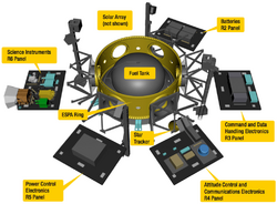The LCROSS Lunar-impact water detection mission in 2009 took advantage of the structural capabilities of ESPA ring to attach all six of its science experiments, command and control systems, communications equipment, batteries, solar panels, and even a small monopropellant propulsion system to implement pre-impact payload separation and control.[11]