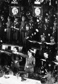 After Adolf Hitler's rise to power, opposition politicians were persecuted and newspapers banned. Erich Koch, who headed the East Prussian Nazi party from 1928, led the district from 1932. The Otto-Braun-House was requisitioned to become the headquarters of the SA, which used the house to imprison and torture its opponents. Walter Schütz, a communist member of the Reichstag, was murdered here.[17] This period was characterized by efforts to collectivize the local agriculture and ruthlessness in dealing with his [clarification needed] critics inside and outside the Nazi Party.[18] He also had long-term plans for mass-scale industrialization of the largely agricultural province. These actions made him unpopular among the local peasants.[18] In 1932 the local paramilitary SA had already started to terrorise their political opponents. On the night of 31 July 1932 there was a bomb attack on the headquarters of the Social Democrats in Königsberg, the Otto-Braun-House. The Communist politician Gustav Sauf was killed; the executive editor of the Social Democratic newspaper "Königsberger Volkszeitung", Otto Wyrgatsch; and the German People's Party politician Max von Bahrfeldt were all severely injured. Members of the Reichsbanner were assaulted while the local Reichsbanner Chairman of Lötzen, Kurt Kotzan, was murdered on 6 August 1932.[19][20]
