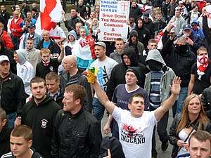 The English Defence League (EDL), an organization in the United Kingdom, has been described as anti-Muslim. It was formed in 2009 to oppose what it considers to be a spread of Islamism, Sharia law and Islamic extremism in the UK.[151] The EDL's former leader, Tommy Robinson, left the group in 2013 saying it had become too extreme and that street protests were ineffective.[152]