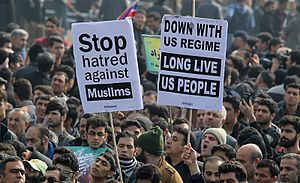 The 2020 Delhi riots, which left more than 50 dead and hundreds injured,[250][251] were triggered by protests against a citizenship law seen by many critics as anti-Muslim and part of Prime Minister Narendra Modi's Hindu nationalist agenda.[252]
