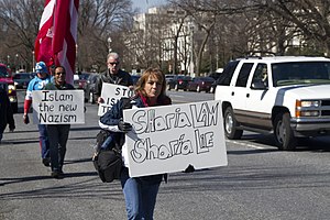 In 2006 ABC News reported that "public views of Islam are one casualty of the post-Sept. 11, 2001 conflict: Nearly six in 10 Americans think the religion is prone to violent extremism, nearly half regard it unfavorably, and a remarkable one in four admits to prejudicial feelings against Muslims and Arabs alike." They also report that 27 percent of Americans admit feelings of prejudice against Muslims.[174] Gallup polls in 2006 found that 40 percent of Americans admit to prejudice against Muslims, and 39 percent believe Muslims should carry special identification.[175] These trends have only worsened with the use of Islamophobia as a campaign tactic during the 2008 American presidential election (with several Republican politicians and pundits, including Donald Trump, asserting that Democratic candidate Barack Obama is secretly a Muslim), during the 2010 mid-term elections (during which a proposed Islamic community center was dubbed the "Ground Zero Mosque"[176]), and the 2016 presidential election, during which Republican nominee Donald Trump proposed banning the entrance into the country of all Muslims. Associate Professor Deepa Kumar writes that "Islamophobia is about politics rather than religion per se"[177] and that modern-day demonization of Arabs and Muslims by US politicians and others is racist and Islamophobic, and employed in support of what she describes as an unjust war. About the public impact of this rhetoric, she says that "One of the consequences of the relentless attacks on Islam and Muslims by politicians and the media is that Islamophobic sentiment is on the rise." She also chides some "people on the left" for using the same "Islamophobic logic as the Bush regime".[178] In this regards, Kumar confirms the assertions of Stephen Sheehi, who "conceptualises Islamophobia as an ideological formation within the context of the American empire. Doing so "allows us to remove it from the hands of 'culture' or from the myth of a single creator or progenitor, whether it be a person, organisation or community." An ideological formation, in this telling, is a constellation of networks that produce, proliferate, benefit from, and traffic in Islamophobic discourses."[179]