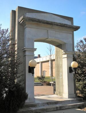 Entry to Old Main Building, reconstructed on High Street opening onto the Quadrangle