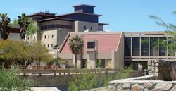 The campus is one of the few places in the world outside of Bhutan or Tibet to have buildings created with the Dzong architectural style. It sits on hillsides overlooking the Rio Grande river, with Ciudad Juárez in view across the Mexico–United States border.