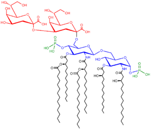 Saccharolipids describe compounds in which fatty acids are linked to a sugar backbone, forming structures that are compatible with membrane bilayers. In the saccharolipids, a monosaccharide substitutes for the glycerol backbone present in glycerolipids and glycerophospholipids. The most familiar saccharolipids are the acylated glucosamine precursors of the Lipid A component of the lipopolysaccharides in Gram-negative bacteria. Typical lipid A molecules are disaccharides of glucosamine, which are derivatized with as many as seven fatty-acyl chains. The minimal lipopolysaccharide required for growth in E. coli is Kdo2-Lipid A, a hexa-acylated disaccharide of glucosamine that is glycosylated with two 3-deoxy-D-manno-octulosonic acid (Kdo) residues.[51]
