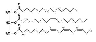 Glycerolipids are composed of mono-, di-, and tri-substituted glycerols,[29] the best-known being the fatty acid triesters of glycerol, called triglycerides. The word "triacylglycerol" is sometimes used synonymously with "triglyceride". In these compounds, the three hydroxyl groups of glycerol are each esterified, typically by different fatty acids. Because they function as an energy store, these lipids comprise the bulk of storage fat in animal tissues. The hydrolysis of the ester bonds of triglycerides and the release of glycerol and fatty acids from adipose tissue are the initial steps in metabolizing fat.[30]:630–1
