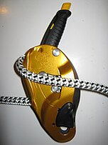 The most complex use is for rope solo climbing, for which devices such as Wren's Silent Partner, the Petzel GriGri, and the Wild Country Revo have been used (rope solo climbing requires the widest range of rope devices including ascenders and descenders),[3][4] or the more straightforward top rope solo climbing, for which the Petzel Micro Traxion, and Camp Lift have been used.[5]