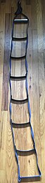 Bachar ladder. A narrow flexible (e.g. it can be rolled up) all-metal, or PVC/webbing, ladder that is hung horizontally between two points (but usually with one point higher to create a slope), and where the climber ascends and descends the rungs using only their arm strength (i.e. no use is made of the feet); considered an early version of a campus board but that focused on arm strength and not hand/finger strength.[36]