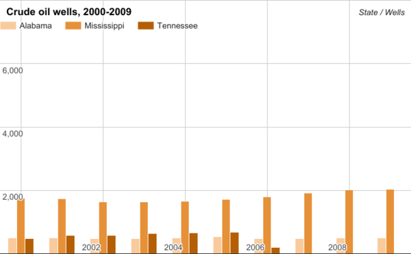 Crude oil wells in Alabama and neighboring states (2000-2009)