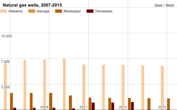 Producing natural gas wells in Alabama and neighboring states (2007-2015)