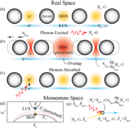 Competing with the generation of electrons is the downconversion of optical phonons into multiple acoustic phonons. The coupling arises from the crystal Hamiltonian (H) expanded in terms of the ionic displacement ([math]\displaystyle{ d_{i\alpha} }[/math]) from the equilibrium position ([math]\displaystyle{ r_i }[/math]) of atom i in direction [math]\displaystyle{ \alpha }[/math] in direction, i.e.,[2][8]