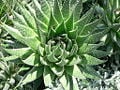 Aloe (also written Aloë) is any member of the flowering plant genus Aloe, comprising about 400 species of succulent, perennial plants, most of which have a rosette of serrated leaves at the base but no or little stem. The genus is native to Africa and is common in South Africa's Cape Province and the mountains of tropical Africa, and neighboring areas such as Madagascar, the Arabian peninsula, and the islands off Africa. Today, it is widely grown in warmer climates globally, and indoors.