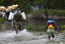 In the cases of humanitarian crises, especially natural disasters such as tornadoes, tsunamis and earthquakes, these incidences leave environmental and ecological impacts on the regions affected. The aftermaths of natural disasters can lead to a significant decrease in natural resources while making the region prone to future issues.[16] For example, if a forest fire occurs in a large region, the area may be susceptible to air pollution, dust clouds, release of carcinogenic gases and others. Forest ecological wildlife, for example, is severely impacted by such events. In the cases of water natural disasters such as floods and tsunamis, extensive damage due to the water is prevalent.[17] Fish, corals and other ocean life is impacted, which further impacts the livelihoods of fishermen.[18]