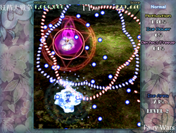 Fairy Wars (Japanese: 妖精大戦争 ~ 東方三月精 Hepburn: Yōsei Daisensō ~ Tōhō Sangetsusei, lit. "Great Fairy Wars ~ Eastern Three Fairies") is a shoot 'em up game, and is the 12.8th official game in the Touhou Project by the dōjin circle Team Shanghai Alice. The game was released on August 14, 2010 at Comiket 78.[1] The game is the sequel to the Touhou Sangetsusei manga series. The game's illustrations were done by Makoto Hirasaka, the artist of the Touhou Sangetsusei series, instead of ZUN. The game is sometimes called FW or GFW for short.