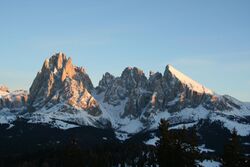 In geomorphology, a col is the lowest point on a mountain ridge between two peaks.[1] It may also be called a gap.[1] Particularly rugged and forbidding cols in the terrain are usually referred to as notches. They are generally unsuitable as mountain passes, but are occasionally crossed by mule tracks or climbers' routes. The term col tends to be associated more with mountain rather than hill ranges.[2] It is derived from the French col ("collar, neck") from Latin collum, "neck".[3]