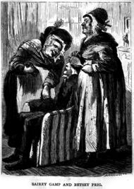 The blacking-warehouse was the last house on the left-hand side of the way, at old Hungerford Stairs. It was a crazy, tumble-down old house, abutting of course on the river, and literally overrun with rats. Its wainscoted rooms, and its rotten floors and staircase, and the old grey rats swarming down in the cellars, and the sound of their squeaking and scuffling coming up the stairs at all times, and the dirt and decay of the place, rise up visibly before me, as if I were there again. The counting-house was on the first floor, looking over the coal-barges and the river. There was a recess in it, in which I was to sit and work. My work was to cover the pots of paste-blacking; first with a piece of oil-paper, and then with a piece of blue paper; to tie them round with a string; and then to clip the paper close and neat, all round, until it looked as smart as a pot of ointment from an apothecary's shop. When a certain number of grosses of pots had attained this pitch of perfection, I was to paste on each a printed label, and then go on again with more pots. Two or three other boys were kept at similar duty down-stairs on similar wages. One of them came up, in a ragged apron and a paper cap, on the first Monday morning, to show me the trick of using the string and tying the knot. His name was Bob Fagin; and I took the liberty of using his name, long afterwards, in Oliver Twist.[31]