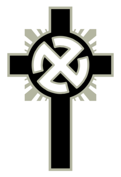 Alfred Rosenberg, editor of Völkischer Beobachter, wrote The Myth of the Twentieth Century, in which he argued that the Catholic and Protestant churches had distorted Christianity in such a way that the "heroic" and "Germanic" aspects of Jesus's life had been ignored. For Rosenberg, positive Christianity was a transitional ideology that would pave the way to build a new, fully racialist faith from the Hitlerian Reich Church.[20] Instead of the cross, its symbol was the orb of the sun in the form of a sun cross, and in principle, it was the elevation of the Nordic race, a rejection of Old Europe's traditional divine revelation dogmas, and the promotion of a German God.[21] For Rosenberg the Aryan-Nordic race was divine, and god was in the blood and its culture was the kingdom of heaven, in contrast the Jewish race was evil and it was a satanic counter race against the divine Aryan-Nordic race.[22] Hitler approved of the book's work in general[21] and emphasised the desirability of positive Christianity, yet distanced himself from much of Rosenberg's more radical ideas sidelined to the lunatic fringe within his movement, wishing to retain the support of the conservative Christian electorate and social elite. Hitler's official brand of state-sanctioned Positive Christianity incorporated Protestant and Catholic variant denominations into the Reich Church.