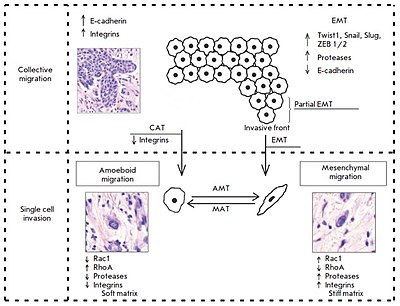 In this way malignant tumor cells use the mechanisms of both collective and single cell migration as physiological prototypes in the process of invasive growth and metastasis.[2]