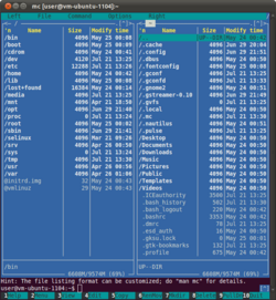 An orthodox file manager typically has three windows. Two of the windows are called panels and are positioned symmetrically at the top of the screen. The third is the command line, which is essentially a minimized command (shell) window that can be expanded to full screen. Only one of the panels is active at a given time. The active panel contains the "file cursor". Panels are resizable and can be hidden. Files in the active panel serve as the source of file operations performed by the manager. For example, files can be copied or moved from the active panel to the location represented in the passive panel. This scheme is most effective for systems in which the keyboard is the primary or sole input device. The active panel shows information about the current working directory and the files that it contains. The passive (inactive) panel shows the content of the same or another directory (the default target for file operations). Users may customize the display of columns that show relevant file information. The active panel and passive panel can be switched (often by pressing the tab key).