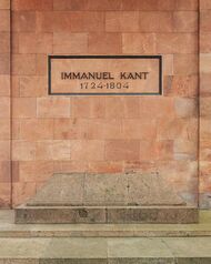 Kant's mausoleum adjoins the northeast corner of Königsberg Cathedral in Kaliningrad, Russia. The mausoleum was constructed by the architect Friedrich Lahrs and was finished in 1924, in time for the bicentenary of Kant's birth. Originally, Kant was buried inside the cathedral, but in 1880 his remains were moved to a neo-Gothic chapel adjoining the northeast corner of the cathedral. Over the years, the chapel became dilapidated and was demolished to make way for the mausoleum, which was built on the same location.