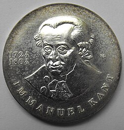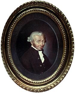 When his body was transferred to a new burial spot, his skull was measured during the exhumation and found to be larger than the average German male's with a "high and broad" forehead.[52] His forehead has been an object of interest ever since it became well known through his portraits: "In Döbler's portrait and in Kiefer's faithful if expressionistic reproduction of it—as well as in many of the other late eighteenth- and early nineteenth-century portraits of Kant—the forehead is remarkably large and decidedly retreating."[53]