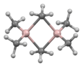 Trimethylaluminium is an organometallic compound with a bridging methyl group. It is used in the industrial production of some alcohols.