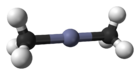 Dimethylzinc has a linear coordination. It is a volatile pyrophoric liquid that is used in the preparation of semiconducting films.