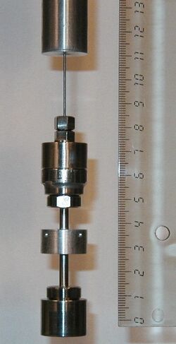 In a sorption calorimetric experiment, a two-chamber calorimetric cell is inserted into a double-twin microcalorimeter.[4] Water evaporates, diffuses through the tube connecting two chambers of the calorimetric cell and is absorbed by the studied substance.