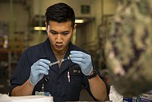 Preparation of the flu vaccine for sailors serving aboard the USS Gerald R. Ford