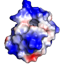 Surface charge distribution. Positive charge in blue; negative charge in red.