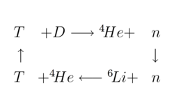 in situ and thus burn deuterium and lithium. Under conditions of sufficient temperature and pressure the reactions form a loop chain reaction known as Jetter's Cycle.