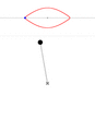 This linear acceleration a along the red axis can be related to the change in angle θ by the arc length formulas; s is arc length: [math]\displaystyle{ \begin{align} s &= \ell\theta, \\ v &= \frac{ds}{dt} = \ell\frac{d\theta}{dt}, \\ a &= \frac{d^2s}{dt^2} = \ell\frac{d^2\theta}{dt^2}, \end{align} }[/math] thus: [math]\displaystyle{ \begin{align} \ell\frac{d^2\theta}{dt^2} &= -g \sin\theta, \\ \frac{d^2\theta}{dt^2} + \frac{g}{\ell} \sin\theta &= 0. \end{align} }[/math]