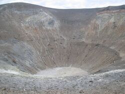 A Vulcanian eruption is a type of volcanic eruption characterized by a dense cloud of ash-laden gas exploding from the crater and rising high above the peak. They usually commence with phreatomagmatic eruptions which can be extremely noisy due to the rising magma heating water in the ground. This is usually followed by the explosive clearing of the vent and the eruption column is dirty grey to black as old weathered rocks are blasted out of the vent. As the vent clears, further ash clouds become grey-white and creamy in colour, with convolutions of the ash similar to those of Plinian eruptions.