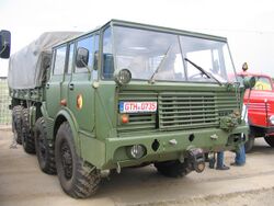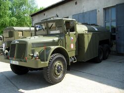 Following the Nazi occupation of Czechoslovakia the production at Kopřivnice was annexed by the Germans for the supply of trucks needed by the Wehrmacht. Apart from the existing line up of T27, T92/92 a new heavy truck, the T81, commenced production featuring liquid-cooled 12.5 L V8 diesel engine with a power output of 118 kW (160 PS; 158 hp), in 6×4 axle configuration. This vehicle evolved in 1942 into the T111 which continued in production until 1962, with the total of 33,690 units made.[33] The T111 also featured Tatra's first air-cooled diesel engine, a massive V12 originally designed for the armoured Sd.Kfz. 234 Puma. In the latter stages of World War II Tatra was instrumental in the development of air-cooled diesel engines for German tanks. In late 1944 General Heinz Guderian ordered that production of the Type 38(t) Hetzer tank be modified to incorporate a Tatra Type 928 V-8 air-cooled diesel engine, though this order was delayed so production could continue uninterrupted. After the war the T111 contributed heavily to the rebuilding effort in Central and Eastern Europe and a memorial was built at Magadan, Siberia, for its exploits in the Far East of the USSR.[34]