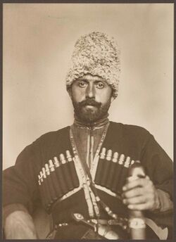 Cossack man wearing the chokha, a clothing the Cossacks appropriated from the indigenous peoples of the Caucasus along with other cultural traits