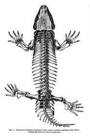 Likewise, English paleontologist D.M.S. Watson noted in 1918 that Conodectes, a dubious genera named by the famous Edward Drinker Cope back in 1896, was likely synonymous with Seymouria.[3] Robert Broom (1922) argued that the genus should be referred to as Conodectes since that name was published first,[12] but Alfred Romer (1928) objected, noting that the name Seymouria was too popular within the scientific community to be replaced.[9] During this time, Seymouria was generally seen as a very early reptile, part of an evolutionary grade known as "cotylosaurs", which also included many other stout-bodied Permian reptiles or reptile-like tetrapods.