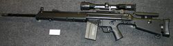 The Federal Police (Spanish: Policía Federal, PF), formerly known as the Policía Federal Preventiva (Federal Preventive Police),[3] was a Mexican national police force. It was under the authority of the Department of Security and Civil Protection. They were sometimes referred to by the slang term "Federales" or "Mexican feds" by some U.S. agents and media. Typically, agents of the Federal Police are heavily armed and wear dark blue, black, or gray combat fatigues. The Federal Police was officially dissolved and absorbed to the National Guard, a new national police institution created by president Andrés Manuel López Obrador, on 1 October 2019.