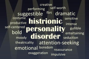 - shows self-dramatization, theatricality, and exaggerated expression of emotion