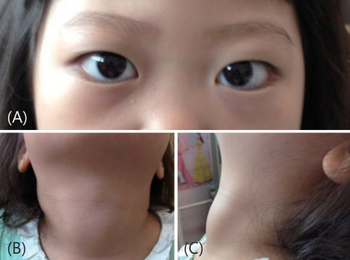 | Child with Graves' disease - with a goiter and protruding eyes. | |