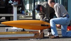By 2003, not only had a working thermal-powered glider (Slocum Thermal) been demonstrated by Webb Research (founded by Doug Webb), but they and other institutions had introduced battery-powered gliders with impressive duration and efficiency, far exceeding that of traditional survey-class AUVs.[6] These vehicles have been widely deployed in the years since then. The University of Washington Seaglider, Scripps Institution of Oceanography Spray, and Teledyne Webb Research Slocum vehicles have performed feats such as completing a transatlantic journey[7] and conducting sustained, multi-vehicle collaborative monitoring of oceanographic variables.[citation needed] In 2011, the first wingless glider, SeaExplorer, was released by a collaboration of French institutions and companies.[8]