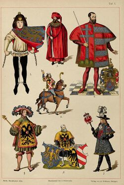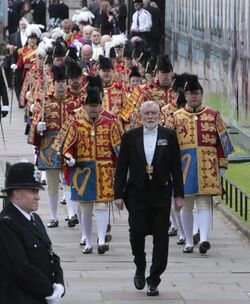 Like other officers of arms, a herald would often wear a surcoat, called a tabard, decorated with the coat of arms of his master. It was possibly due to their role in managing the tournaments of the Late Middle Ages that heralds came to be associated with the regulation of the knights' coats of arms. Heralds have been employed by kings and large landowners, principally as messengers and ambassadors. Heralds were required to organise, announce and referee the contestants at a tournament.[2] This practice of heraldry became increasingly important and further regulated over the years, and in several countries around the world it is still overseen by heralds. In the United Kingdom heralds are still called upon at times to read proclamations publicly; for which they still wear tabards emblazoned with the royal coat of arms.