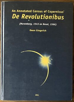 Gingerich was a recognized authority on both Johannes Kepler and Nicolaus Copernicus, especially in regard to Copernicus's De revolutionibus orbium coelestium. He was also an expert on Galileo's astronomical observations, and took a leading role in establishing that the watercolor lunar images in a celebrated copy of Galileo's Sidereus Nuncius were modern forgeries and not made by Galileo.[9]