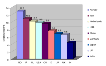 Energy intensity can be used as a comparative measure between countries; whereas the change in energy consumption required to raise GDP in a specific country over time is described as its energy elasticity.