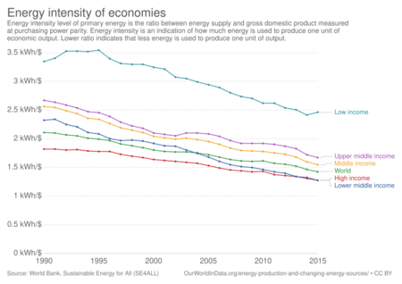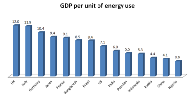 Various nations have significantly higher or lower energy intensities.
