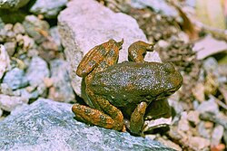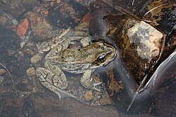 Ohio[edit]Ohio Potential listing of amphibians and reptiles[edit] The green salamander The spotted turtle In June 2015, the U.S. Fish and Wildlife Service announced it would consider seven reptiles and two amphibians, found primarily in the southeastern United States and in several other states, for federal protection under the Endangered Species Act, including alligator snapping turtles, green salamanders and non-venomous snakes. The service's announcement was a response to the Center for Biological Diversity, a nonprofit conservation and endangered species advocacy group. The center has argued that the species have experienced habitat loss and other threats to their survival; the federal petitions were first filed in July 2012. Two kinds of these species, the spotted turtle and the green salamander, are believed to or known to occur in Ohio. The Fish and Wildlife Service said it would review the potential threats to these species and decide whether protection is warranted. As of July 2016, the species remained under review for listing.[105] Oklahoma[edit]Oklahoma Potential listing of amphibians and reptiles[edit] The alligator snapping turtle In June 2015, the U.S. Fish and Wildlife Service announced it would consider seven reptiles and two amphibians, found primarily in the southeastern United States and in several other states, for federal protection under the Endangered Species Act, including alligator snapping turtles, green salamanders and non-venomous snakes. The service's announcement was a response to the Center for Biological Diversity, a nonprofit conservation and endangered species advocacy group. The center has argued that the species have experienced habitat loss and other threats to their survival; the federal petitions were first filed in July 2012. One of these species, the alligator snapping turtle, is believed to or known to occur in Oklahoma. The Fish and Wildlife Service said it would review the potential threats to these species and decide whether protection is warranted. As of July 2016, the species remained under review for listing.[106] Oregon[edit]Oregon Potential listing of amphibians and reptiles[edit]The Cascades frog The foothill yellow-legged frog In June 2015, the U.S. Fish and Wildlife Service announced it would consider amphibian and reptile species, found primarily in the Pacific Northwest and California, for federal protection under the Endangered Species Act, including frog and salamander species. The service's announcement was a response to the Center for Biological Diversity, a nonprofit conservation and endangered species advocacy group. The center has argued that the species have experienced habitat loss and other threats to their survival; the federal petitions were first filed in July 2012. The FWS must engage in a comprehensive review of these species before they can be listed as endangered or threatened. The review focuses on the species’ population trends, habitat requirements and any ongoing conservation activities for the species. Three of these species, the Cascades frog, the foothill yellow-legged frog, and the Oregon slender salamander, are believed to or known to occur in Oregon. The Fish and Wildlife Service said it would review the potential threats to these species and decide whether federal protection is warranted. As of July 2016, the three species remained under review for listing.[107] Pennsylvania[edit]Pennsylvania Potential listing of amphibians and reptiles[edit] The green salamander The spotted turtle In June 2015, the U.S. Fish and Wildlife Service announced it would consider seven reptiles and two amphibians, found primarily in the southeastern United States and in several other states, for federal protection under the Endangered Species Act, including alligator snapping turtles, green salamanders and non-venomous snakes. The service's announcement was a response to the Center for Biological Diversity, a nonprofit conservation and endangered species advocacy group. The center has argued that the species have experienced habitat loss and other threats to their survival; the federal petitions were first filed in July 2012. Two kinds of these species, the spotted turtle and the green salamander, are believed to or known to occur in Pennsylvania. The Fish and Wildlife Service said it would review the potential threats to these species and decide whether protection is warranted. As of July 2016, the species remained under review for listing.[108] Long-eared bat and imperiled bats[edit] The northern long-eared bat. In May 2015, the U.S. Fish and Wildlife Service (FWS) designated the northern long-eared bat as a threatened species under the federal Endangered Species Act. The bat is believed or known to occur in 37 states, mostly across much of the eastern and north central United States, including Pennsylvania. The bat's listing came after the discovery of a fungal disease called "white-nose syndrome," which has negatively affected hibernating bats in the northeastern United States; bat populations in the Northeast have declined by up to 99 percent due to the white-nose disease at some hibernation sites, such as in Connecticut and Delaware. According to the FWS, between 5.7 million and 6.7 million bats have died in North America since 2006 due to the disease. Federal protection for the bat will include land restrictions during the summer when newborn bats are nesting, which occurs mostly in forested areas.[109] In July 2015, the U.S. Fish and Wildlife Service provided a total of nearly $1 million in federal grants to 35 states to respond to white-nose syndrome; as of July 2015, the disease has been detected in 26 states. "These grants provide essential support to our state partners in preparing for and responding to this disease," said Jeremy Coleman, the FWS's white-nose syndrome coordinator. Bats are considered crucial for reducing moths, mosquitoes and other insects that affect agriculture and increase the use of pesticides