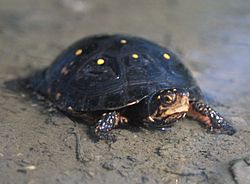 Long-eared bat and imperiled bat species[edit] The northern long-eared bat. In May 2015, the U.S. Fish and Wildlife Service (FWS) designated the northern long-eared bat as a threatened species under the federal Endangered Species Act. The bat is believed or known to occur in 37 states, mostly across much of the eastern and north central United States, including Louisiana. The bat's listing came after the discovery of a fungal disease called "white-nose syndrome," which has negatively affected hibernating bats in the northeastern United States; bat populations in the Northeast have declined by up to 99 percent due to the white-nose disease at some hibernation sites, such as in Connecticut and Delaware. According to the FWS, between 5.7 million and 6.7 million bats have died in North America since 2006 due to the disease. Federal protection for the bat will include land restrictions during the summer when newborn bats are nesting, which occurs mostly in forested areas.[61] In July 2015, the U.S. Fish and Wildlife Service provided a total of nearly $1 million in federal grants to 35 states to respond to white-nose syndrome; as of July 2015, the disease has been detected in 26 states. "These grants provide essential support to our state partners in preparing for and responding to this disease," said Jeremy Coleman, the FWS's white-nose syndrome coordinator.[62] Maine[edit]Maine Potential listing of amphibians and reptiles[edit] The spotted turtle In June 2015, the U.S. Fish and Wildlife Service announced it would consider seven reptiles and two amphibians, found primarily in the southeastern United States and in several other states, for federal protection under the Endangered Species Act, including alligator snapping turtles, green salamanders and non-venomous snakes. The service's announcement was a response to the Center for Biological Diversity, a nonprofit conservation and endangered species advocacy group. The center has argued that the species have experienced habitat loss and other threats to their survival; the federal petitions were first filed in July 2012. One of these species, the spotted turtle, is believed to or known to occur in Maine. The Fish and Wildlife Service said it would review the potential threats to these species and decide whether protection is warranted. As of July 2016, the species remained under review for listing.[63] Maryland[edit]Maryland Potential listing of amphibians and reptiles[edit] The green salamander The spotted turtle In June 2015, the U.S. Fish and Wildlife Service announced it would consider seven reptiles and two amphibians, found primarily in the southeastern United States and in several other states, for federal protection under the Endangered Species Act, including alligator snapping turtles, green salamanders and non-venomous snakes. The service's announcement was a response to the Center for Biological Diversity, a nonprofit conservation and endangered species advocacy group. The center has argued that the species have experienced habitat loss and other threats to their survival; the federal petitions were first filed in July 2012. Two kinds of these species, the spotted turtle and the green salamander, are believed to or known to occur in Maryland. The Fish and Wildlife Service said it would review the potential threats to these species and decide whether protection is warranted. As of July 2016, the species remained under review for listing.[64] Massachusetts[edit]Massachusetts Potential listing of amphibians and reptiles[edit] The spotted turtle In June 2015, the U.S. Fish and Wildlife Service announced it would consider seven reptiles and two amphibians, found primarily in the southeastern United States and in several other states, for federal protection under the Endangered Species Act, including alligator snapping turtles, green salamanders and non-venomous snakes. The service's announcement was a response to the Center for Biological Diversity, a nonprofit conservation and endangered species advocacy group. The center has argued that the species have experienced habitat loss and other threats to their survival; the federal petitions were first filed in July 2012. One species, the spotted turtle, is believed to or known to occur in Massachusetts. The Fish and Wildlife Service said it would review the potential threats to these species and decide whether protection is warranted. As of July 2016, the species remained under review for listing.[65] Michigan[edit]Michigan Potential listing of amphibians and reptiles[edit] The spotted turtle In June 2015, the U.S. Fish and Wildlife Service announced it would consider seven reptiles and two amphibians, found primarily in the southeastern United States and in several other states, for federal protection under the Endangered Species Act, including alligator snapping turtles, green salamanders and non-venomous snakes. The service's announcement was a response to the Center for Biological Diversity, a nonprofit conservation and endangered species advocacy group. The center has argued that the species have experienced habitat loss and other threats to their survival; the federal petitions were first filed in July 2012. One of these species, the spotted turtle, is believed to or known to occur in Michigan. The Fish and Wildlife Service said it would review the potential threats to these species and decide whether protection is warranted. As of July 2016, the species remained under review for listing.[66] Minnesota[edit]Minnesota Long-eared bat and imperiled bats[edit] The northern long-eared bat. In May 2015, the U.S. Fish and Wildlife Service (FWS) designated the northern long-eared bat as threatened under the federal Endangered Species Act. The bat is believed to or known to occur in 37 states, mostly across much of the eastern and north central United States, including Minnesota. The bat's listing as threatened came primarily from a fungal disease known to affect bats called "white-nose syndrom