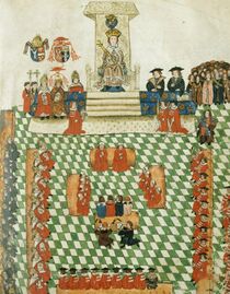 In November 1501, Henry played a considerable part in the ceremonies surrounding his brother Arthur's marriage to Catherine, the youngest child of King Ferdinand II of Aragon and Queen Isabella I of Castile.[9] As Duke of York, Henry used the arms of his father as king, differenced by a label of three points ermine. He was further honoured on 9 February 1506 by Holy Roman Emperor Maximilian I, who made him a Knight of the Golden Fleece.[10]