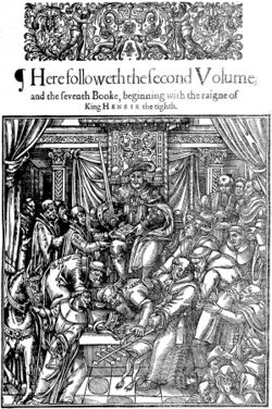 To Cromwell's annoyance, Henry insisted on parliamentary time to discuss questions of faith, which he achieved through the Duke of Norfolk. This led to the passing of the Act of Six Articles, whereby six major questions were all answered by asserting the religious orthodoxy, thus restraining the reform movement in England.[124] It was followed by the beginnings of a reformed liturgy and of the Book of Common Prayer, which would take until 1549 to complete.[206] But this victory for religious conservatives did not convert into much change in personnel, and Cranmer remained in his position.[207] Overall, the rest of Henry's reign saw a subtle movement away from religious orthodoxy, helped in part by the deaths of prominent figures from before the break with Rome, especially the executions of Thomas More and John Fisher in 1535 for refusing to renounce papal authority. Henry established a new political theology of obedience to the crown that continued for the next decade. It reflected Martin Luther's new interpretation of the fourth commandment ("Honour thy father and mother"), brought to England by William Tyndale. The founding of royal authority on the Ten Commandments was another important shift: reformers within the Church used the Commandments' emphasis on faith and the word of God, while conservatives emphasised the need for dedication to God and doing good. The reformers' efforts lay behind the publication of the Great Bible in 1539 in English.[208] Protestant Reformers still faced persecution, particularly over objections to Henry's annulment. Many fled abroad, including the influential Tyndale,[209] who was eventually executed and his body burned at Henry's behest.