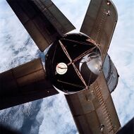 The spacecraft–LM adapter (SLA), built by North American Aviation (Rockwell), was a conical aluminum structure that connected the service module to the Saturn S-IVB rocket stage. It also protected the LM, the service propulsion system engine nozzle, and the launch-vehicle-to-service-module umbilical during launch and ascent through the atmosphere.[1]