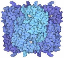 One of the main causes for the pathology of lead is that it interferes with the activity of an essential enzyme called delta-aminolevulinic acid dehydratase, or ALAD (see image of the enzyme structure), which is important in the biosynthesis of heme, the cofactor found in hemoglobin.[148][149][150] Lead also inhibits the enzyme ferrochelatase, another enzyme involved in the formation of heme.[140][151] Ferrochelatase catalyzes the joining of protoporphyrin and Fe2+ to form heme.[140][14][19][unreliable medical source?] Lead's interference with heme synthesis results in production of zinc protoporphyrin and the development of anemia.[152] Another effect of lead's interference with heme synthesis is the buildup of heme precursors, such as aminolevulinic acid, which may be directly or indirectly harmful to neurons.[153] Elevation of aminolevulinic acid results in lead poisoning having symptoms similar to porphyria.[154][155][156][157][158]